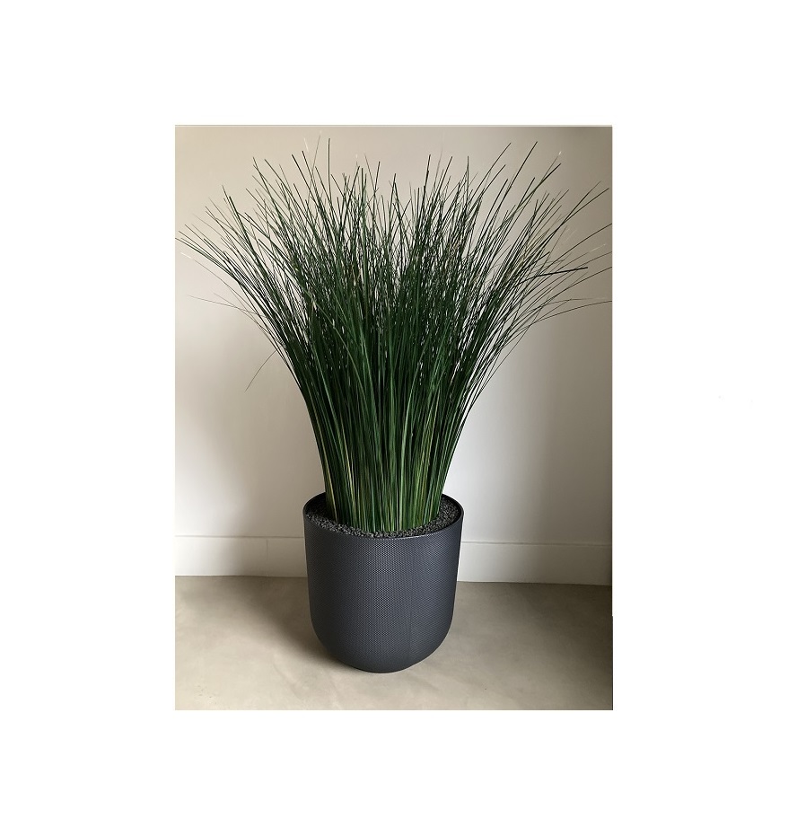 - Ø 35 x 32 cm. hoog, de totale hoogte van bak en gras is ca. 100 cm.